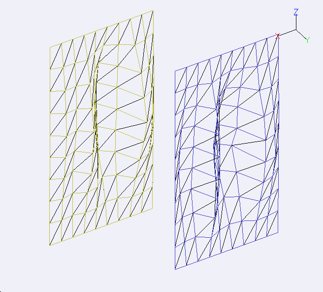 Pierwsza z wyróżnionych grup zidentyfikowanych drgań własnych obejmuje zakres częstotliwości o wartościach mniejszych niż 7 Hz. Ze względu na: słaby poziom i nieodpowiedni charakter widma wymuszenia, trudność pomiaru przyspieszeń drgań czujnikami piezoelektrycznymi dla rozważanych częstotliwości, dużą ilość maksimów występujących w przebiegach amplitud zmierzonych WFP przy ograniczonej rozdzielczości widmowej, w przebiegu fazy WFP powstają duże błędy, co w rezultacie powoduje, że zidentyfikowane postacie drgań własnych są trudne do zinterpretowania. Mimo to, w wynikach wielu przeprowadzonych analiz zauważono pewną tendencję w sposobie drgań ścian kabiny. Zewnętrzna i wewnętrzna, węższa ściana pionowa kabiny drgają z postacią zbliżoną do pierwszej postaci drgań własnych płyty zamocowanej na brzegach, przy czym ich ruch wzajemny odbywa się w przeciwfazie. Można to zauważyć na przykładzie postaci 6.25 Hz przedstawionej na rys. Z.8.a (przeciwne do ruchu całości zewnętrznej ściany wybrzuszenie jest wynikiem błędu fazy zmierzonych przebiegów WFP). Na rys. Z.8. b przedstawiono postać drgań całej kabiny zidentyfikowaną w tej częstotliwości. Szersza, zewnętrzna ściana kabiny wykazuje w rozważanym zakresie częstotliwości większą intensywność drganiową niż węższa.