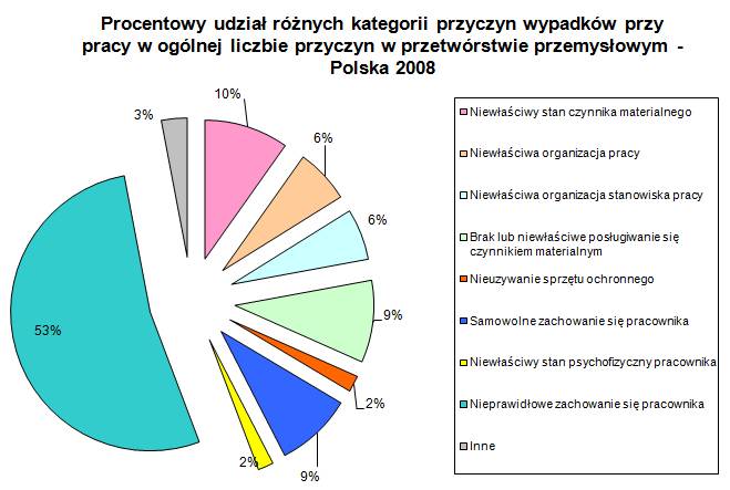 Rys. 14. Struktura przyczyn wypadków przy pracy w przetwórstwie przemysłowym - Polska, 2008.