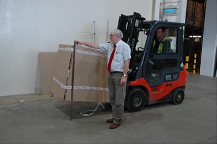 W celu sprawdzenia, czy wysokość B jest zawarta w granicach określonych w Tablicy 2, wystarczy zmierzyć tę wysokość jak to zilustrowano na rys. 1 z zastosowaniem przymiaru liniowego o długości 1,5 m. Jeśli wartość wysokości B przekracza dopuszczalną wartość o kilka cm, rozwiązaniem może być zmniejszenie wysokości C położenia ładunku – zależy to od jakości podłoża, po którym będzie się poruszał wózek. Jeśli zaś nie można zmniejszyć wartości C, to dany ładunek nie powinien być przewożony na wózku, ponieważ ryzyko kolizji wózka z osobą pieszą, innym wózkiem czy elementem infrastruktury jest zbyt duże, ze względu na niewystarczającą widoczność otoczenia przez operatora wózka z danym ładunkiem.